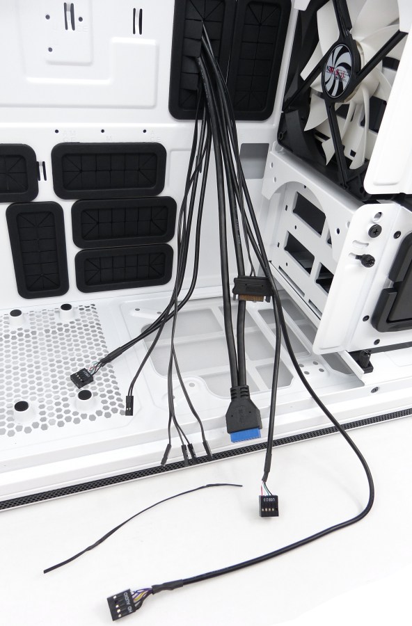 - Aunque puede ser lioso pasar los cables debidamente de los ventiladores instalados en la parte superior, el lomo está bien pensado para no tener problemas en este sentido.