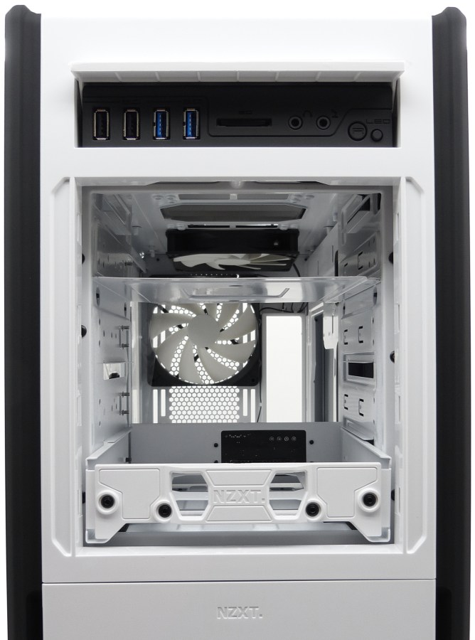 NZXT SWITCH 810. Detalle Frontal Interior Bahías 5,25″. Bandeja para HDD/SSD
