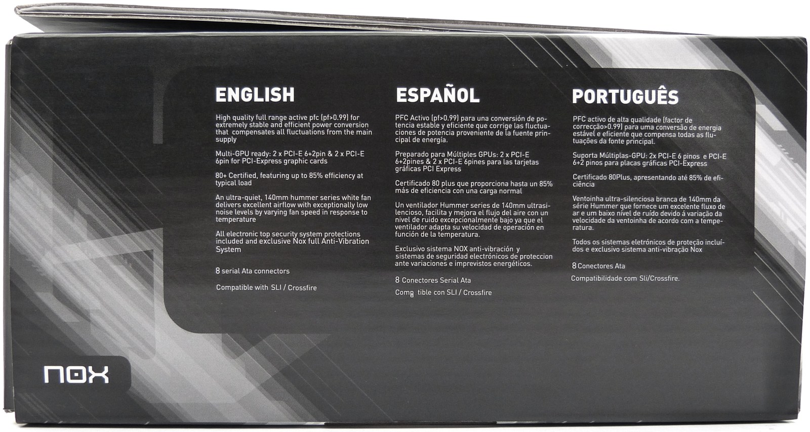 NOX XTREME HUMMER 80 700. Embalaje Vista Lateral Derecha