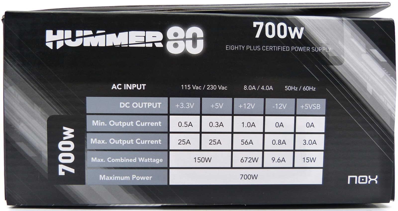NOX XTREME HUMMER 80 700. Embalaje Vista Frontal