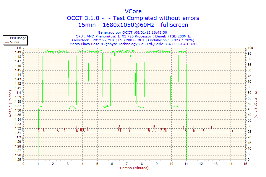 - Carga Alta: bajo prueba de carga «Power Supply» del programa OCCT v3.1.0