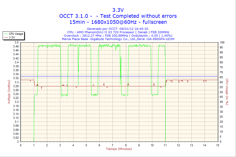 AEROCOOL STRIKE-X 500. Software OCCT v3.1.0. Prueba PSU 3.33V