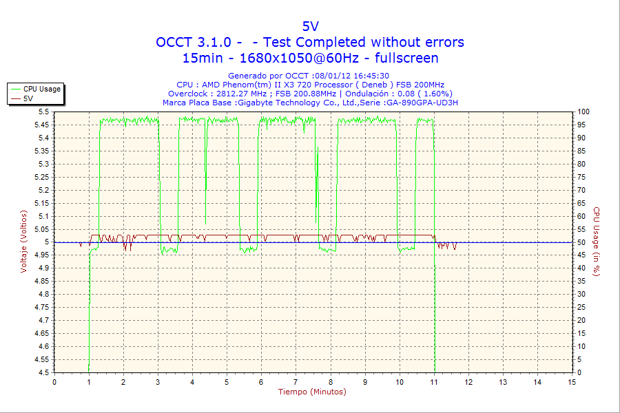 AEROCOOL STRIKE-X 500. Software OCCT v3.1.0. Prueba PSU 5.00V