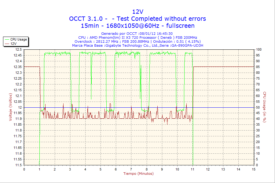 AEROCOOL STRIKE-X 500. Software OCCT v3.1.0. Prueba PSU 12.00V