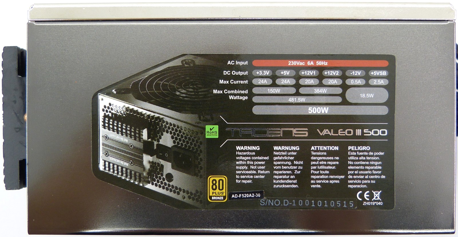 TACENS VALEO III 500. Fuente Vista Lateral Izquierda