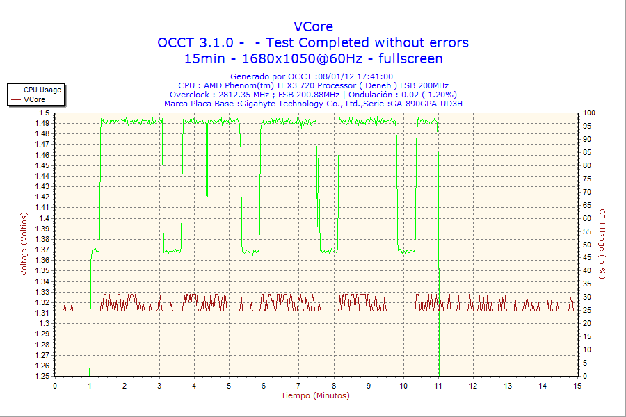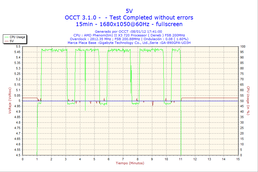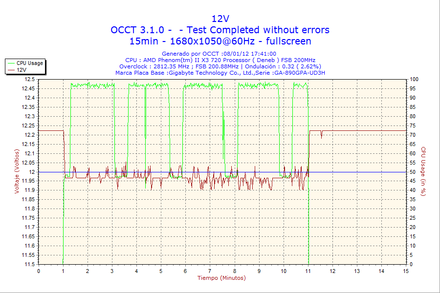 - Carga Alta: bajo prueba de carga «Power Supply» del programa OCCT v3.1.0