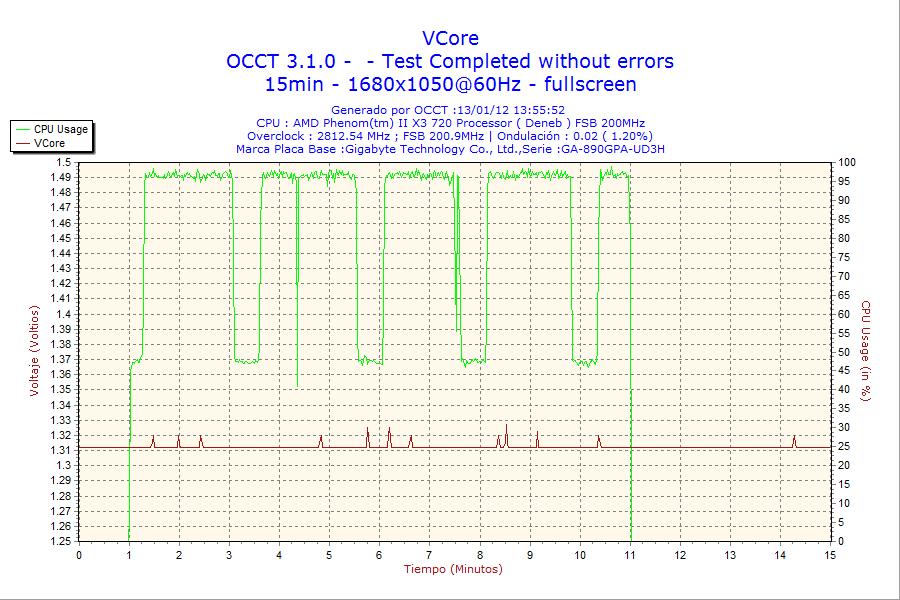 PC POWER & COOLING SILENCER MK III 600. Software OCCT v3.1.0. Prueba PSU VCore