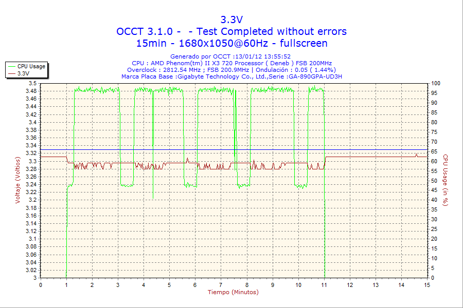 PC POWER & COOLING SILENCER MK III 600. Software OCCT v3.1.0. Prueba PSU 3.33V