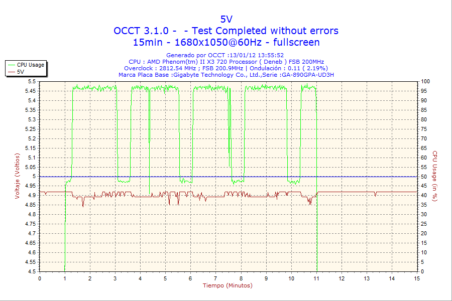 PC POWER & COOLING SILENCER MK III 600. Software OCCT v3.1.0. Prueba PSU 5.00V