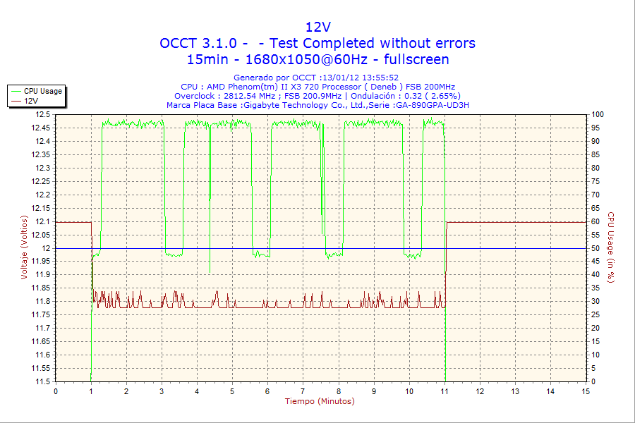PC POWER & COOLING SILENCER MK III 600. Software OCCT v3.1.0. Prueba PSU 12.00V