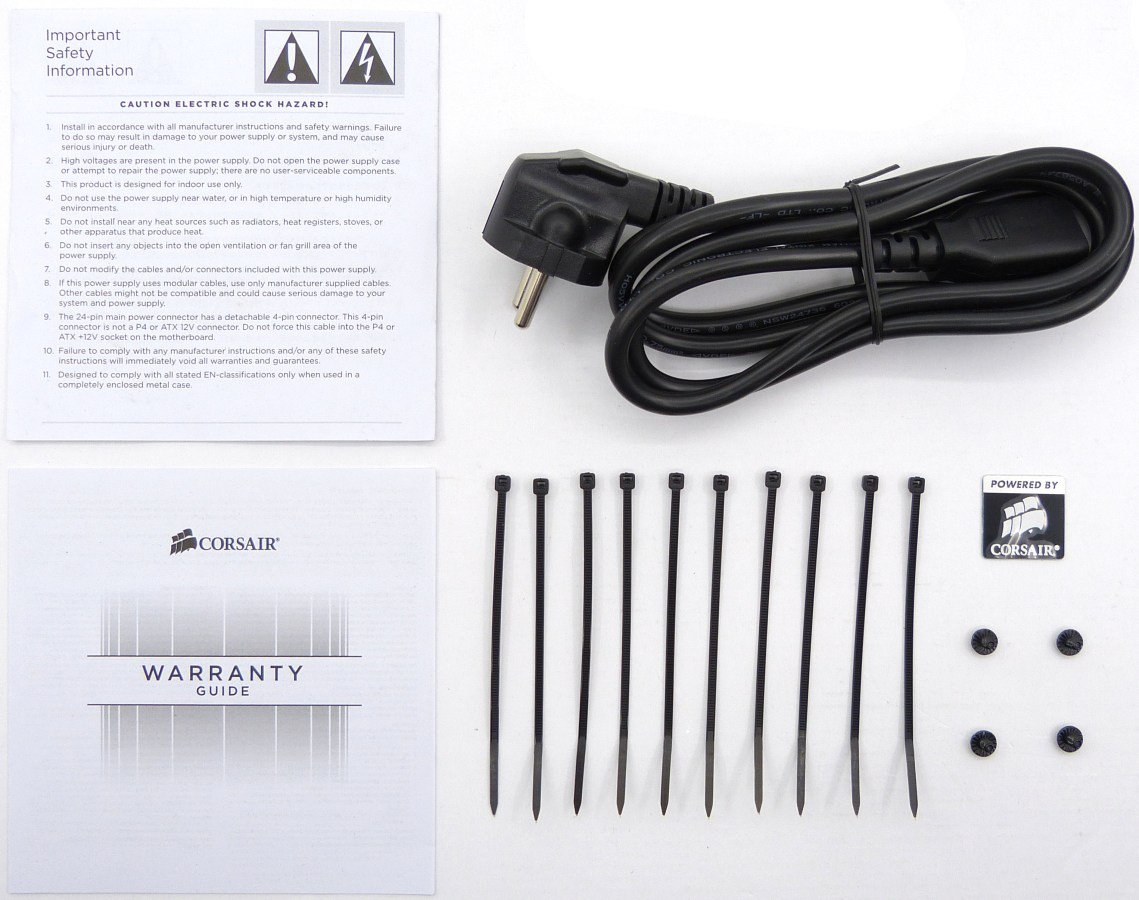 CORSAIR TX750M. Manuales, Cableado de CA, Bridas, Tornillos y Adhesivo