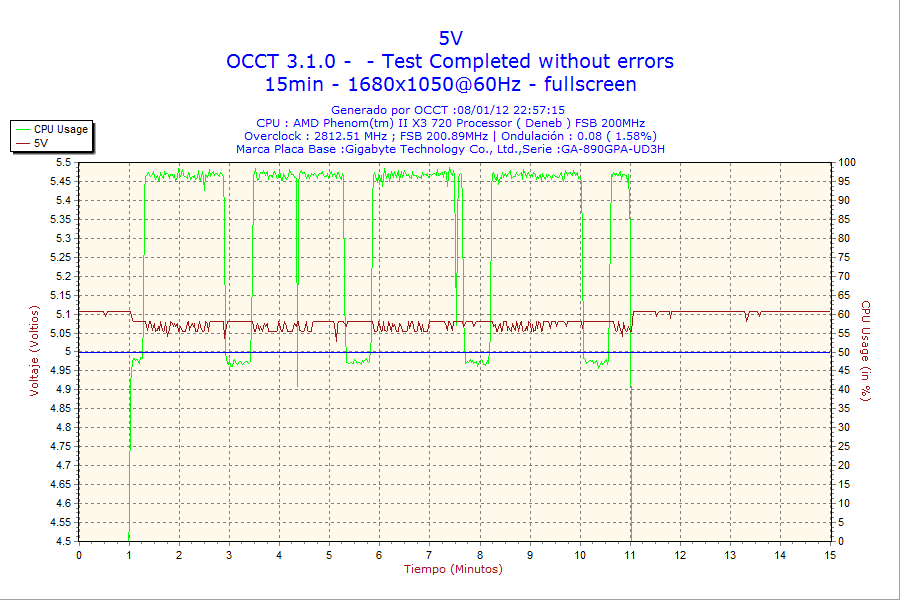 OCZ ZS 750. Software OCCT v3.1.0. Prueba PSU 5.00V