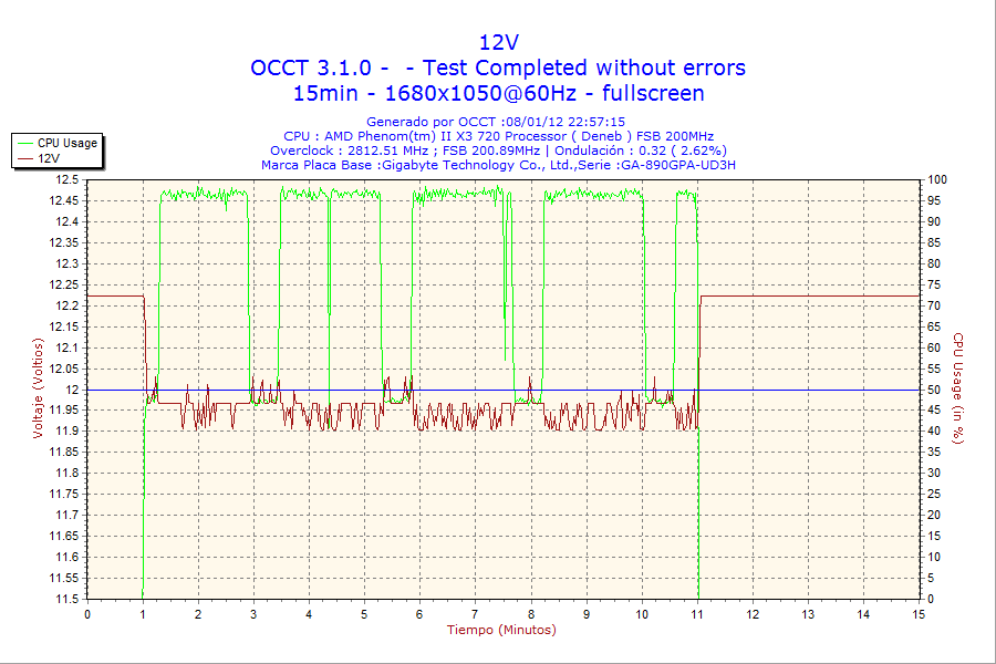OCZ ZS 750. Software OCCT v3.1.0. Prueba PSU 12.00V