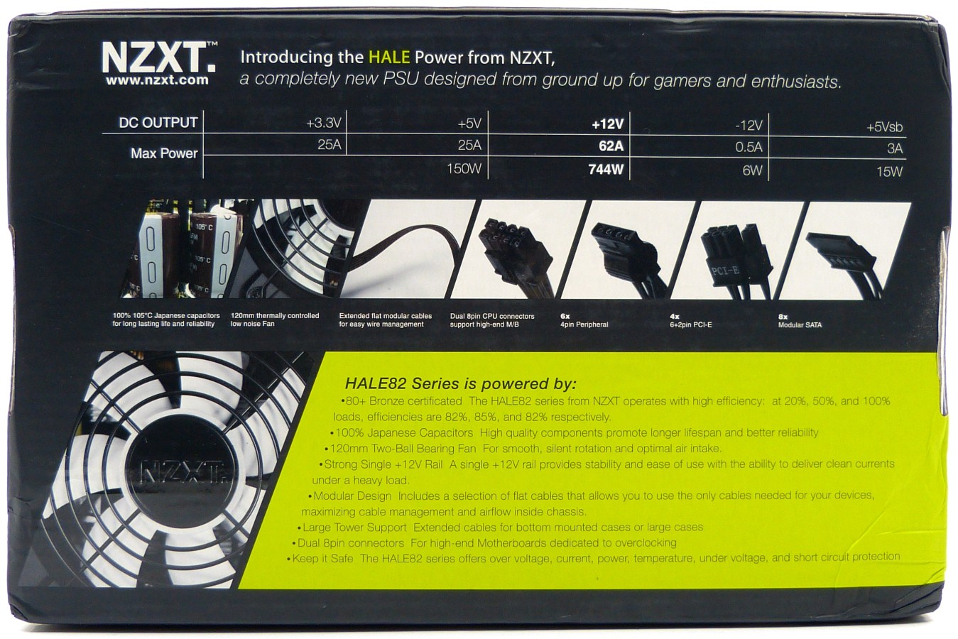 NZXT HALE82 750. Embalaje Vista Trasera