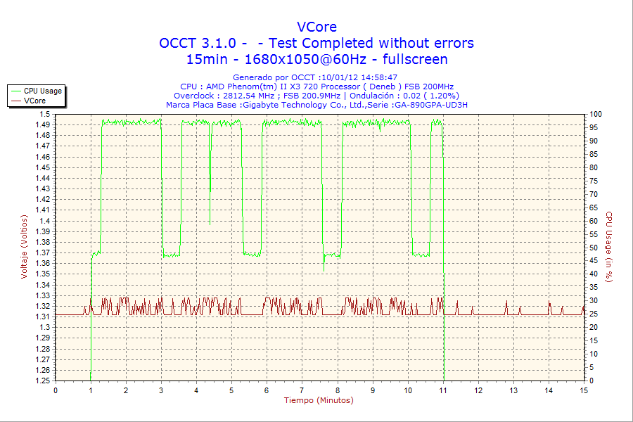 - Carga Alta: bajo prueba de carga «Power Supply» del programa OCCT v3.1.0