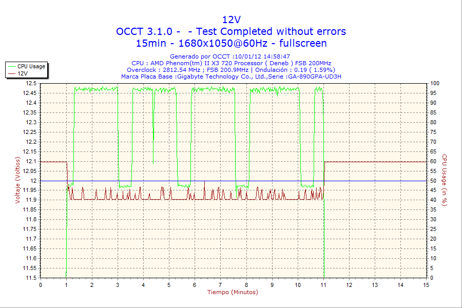 NZXT HALE82 750. Software OCCT v3.1.0. Prueba PSU 12.00V