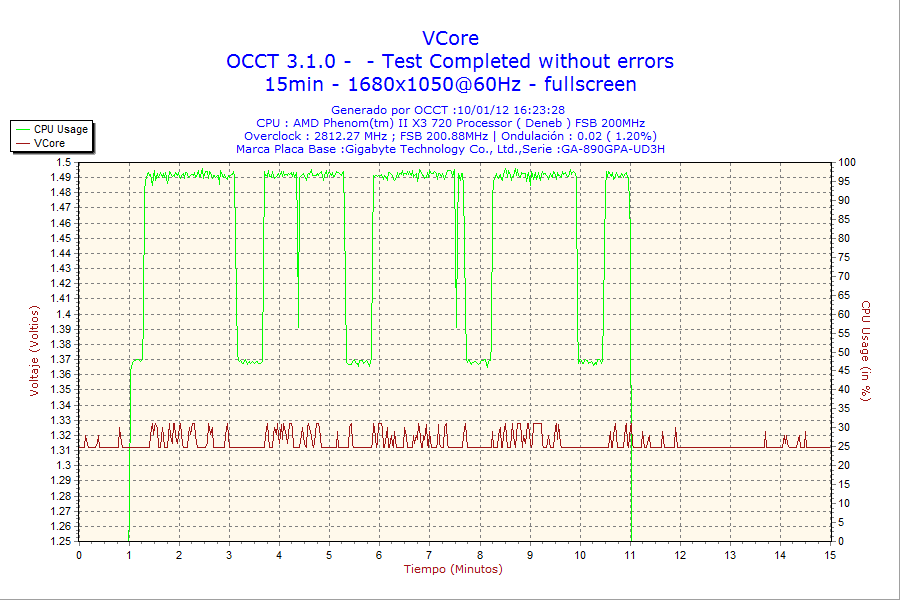 - Carga Alta: bajo prueba de carga «Power Supply» del programa OCCT v3.1.0