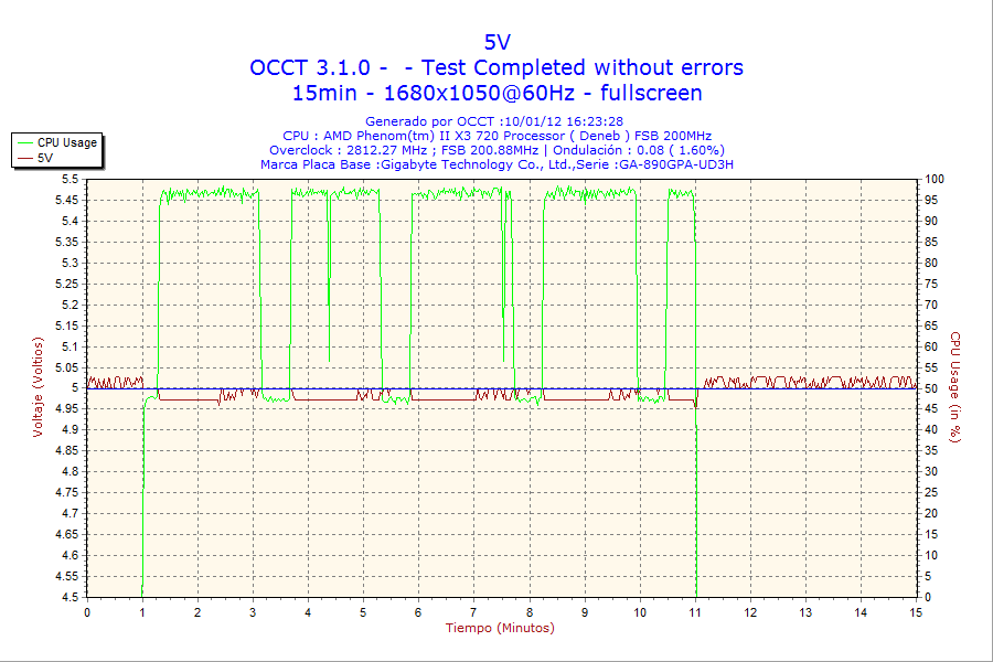 LC POWER LC8850II V2.3 ARKANGEL 850. Software OCCT v3.1.0. Prueba PSU 5.00V