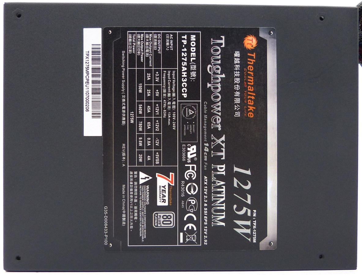 THERMALTAKE TOUGHPOWER XT 1275. Fuente Vista Superior