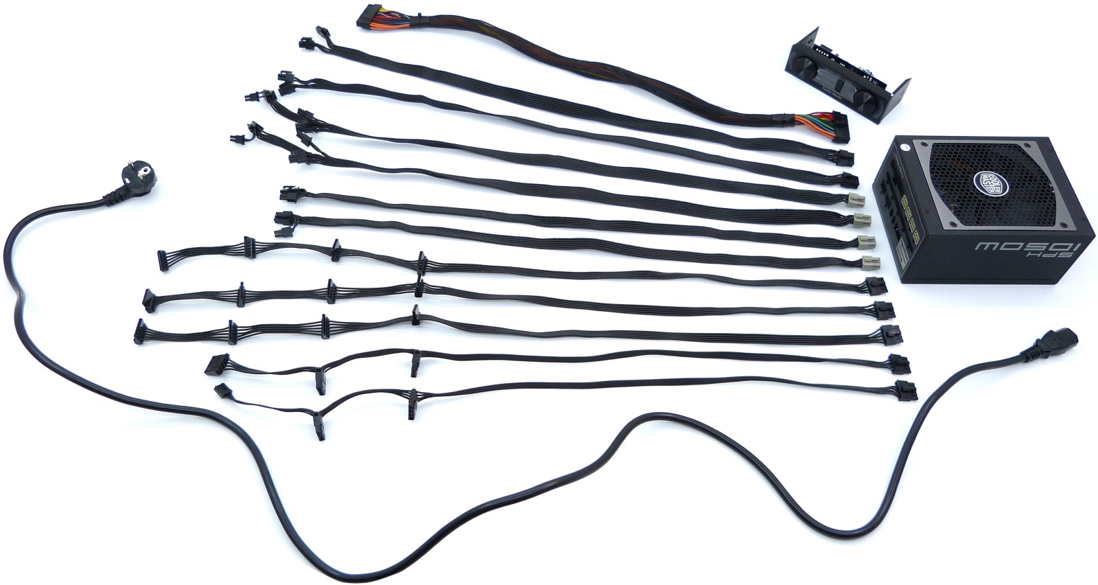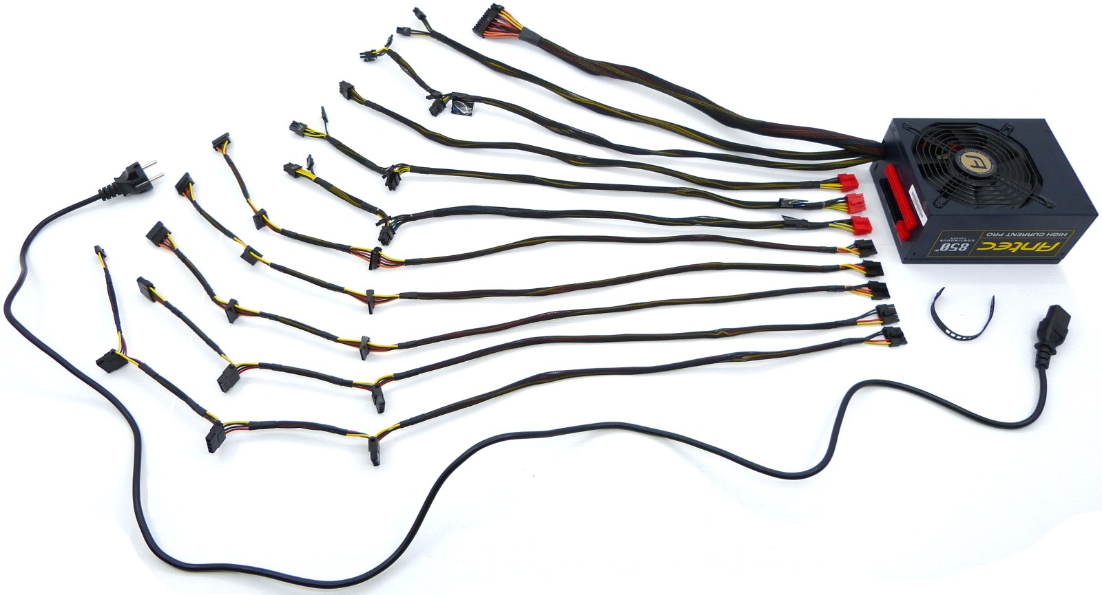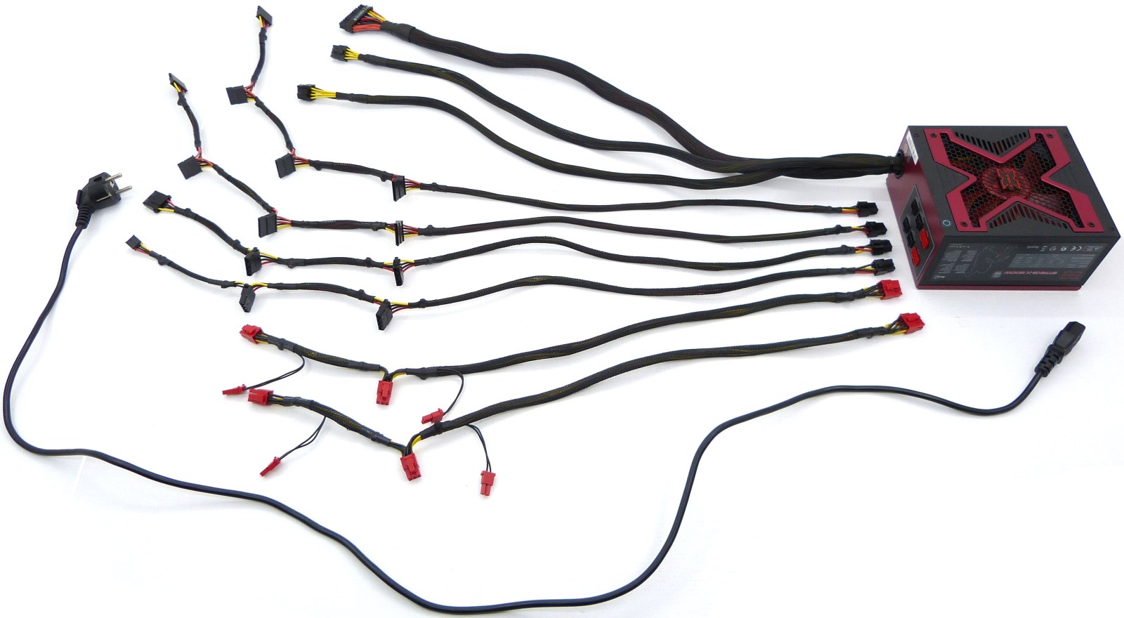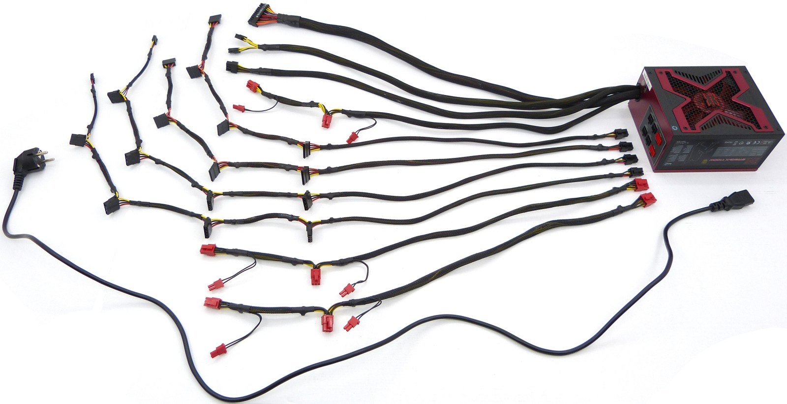 Esta última tanda de fotografías elaboradas, está destinada a mostrar todo el cableado modular y nativo de corriente continua de salida, así como el cable de alimentación de CA. Se pueden apreciar todos los conectores, longitudes, enfundados, etc. de modo que se pueden contrastar de forma directa…