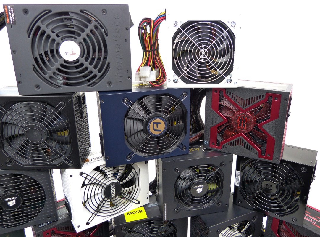 Este otro grupo de fotografías, son detalles de la fotografía anterior, mostrando más detalladamente todas las fuentes. ¿Reconocéis alguna? En ellas se puede ver la gran variedad que existe para poder refrigerar activamente el interior de la fuente, con ventiladores entre 12 y 14cm, algunos de ellos con 0dBA a cargas bajas, una característica muy interesante.