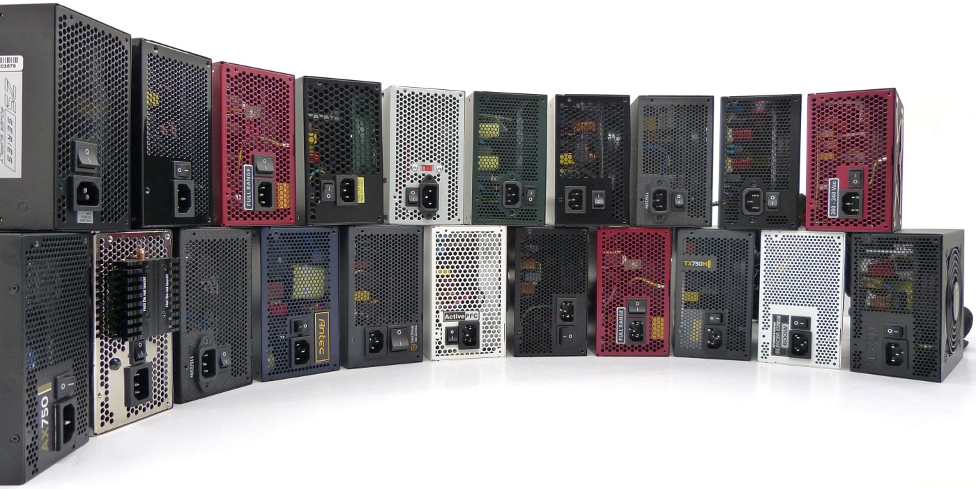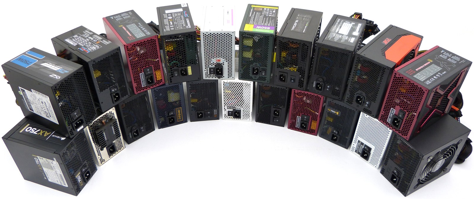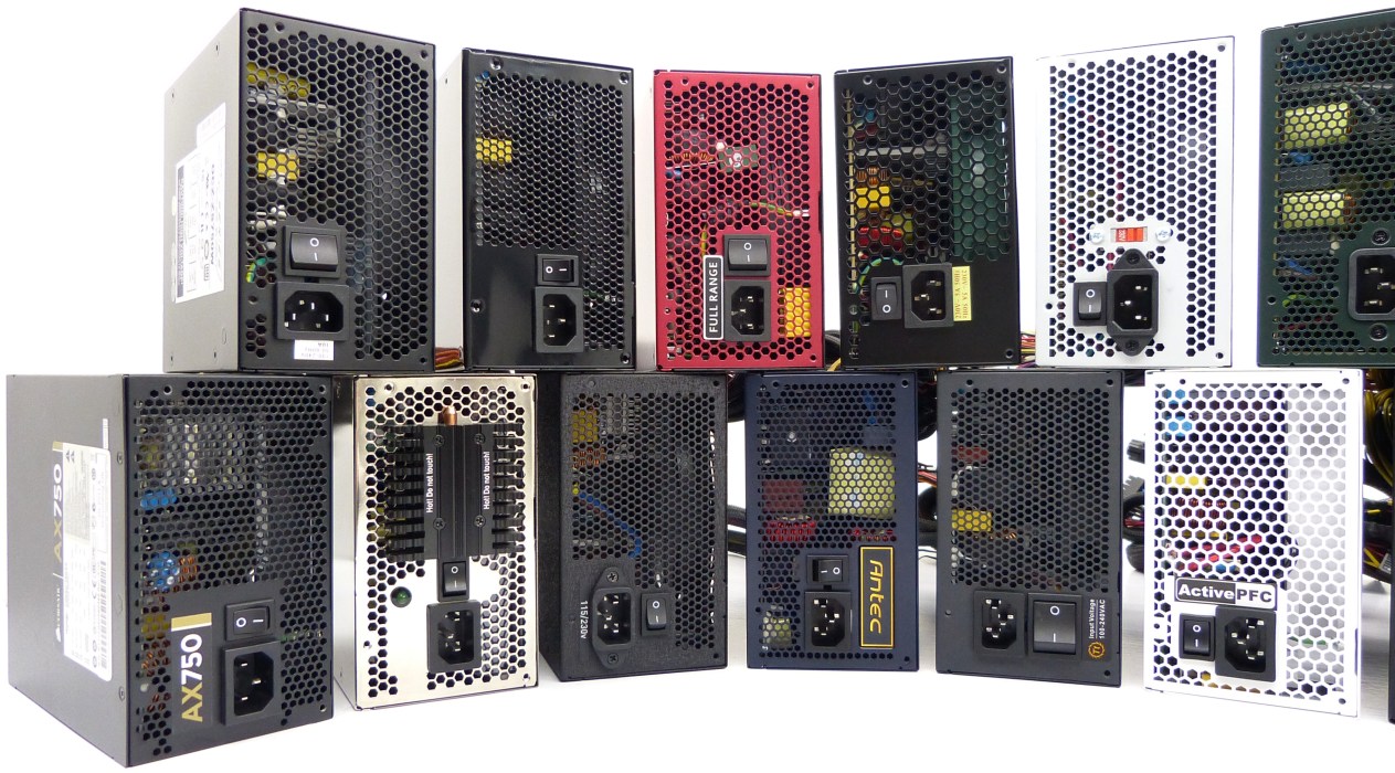5. 22 FUENTES DE ALIMENTACIÓN ATX. Fotografías en Conjunto en «Modo Arco». Vistas Frontales y Traseras