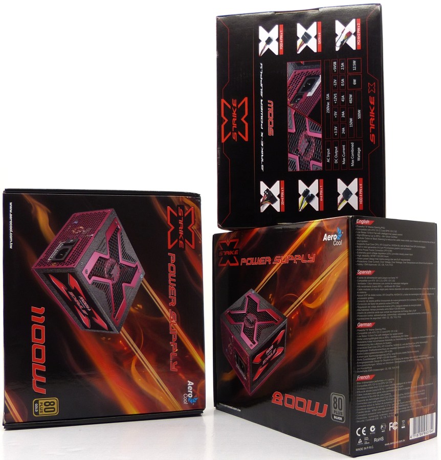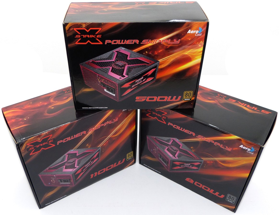 9. 22 FUENTES DE ALIMENTACIÓN ATX. Fotografías de Exposición II. AEROCOOL STRIKE-X 1100W, STRIKE-X 800W y STRIKE-X 500W