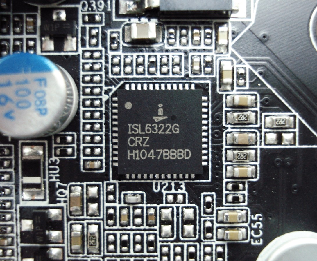 GIGABYTE GA-Z68X-UD5-B3. Detalle Chip INTERSIL ISL6322G (Controlador 1 PWM)