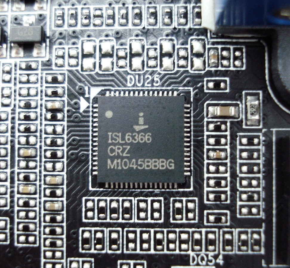 GIGABYTE GA-Z68X-UD5-B3. Detalle Chip INTERSIL ISL6366 (Controlador 2 PWM)