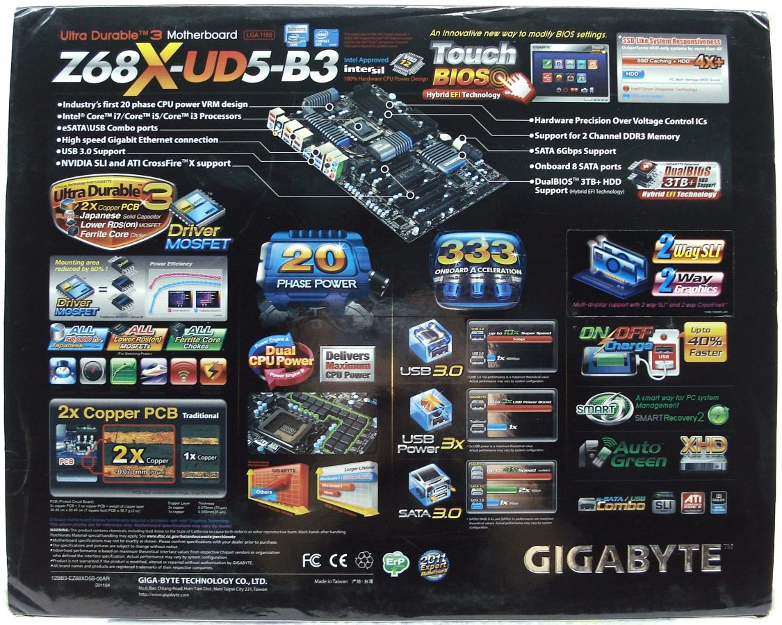 GIGABYTE GA-Z68X-UD5-B3. Embalaje Vista Trasera