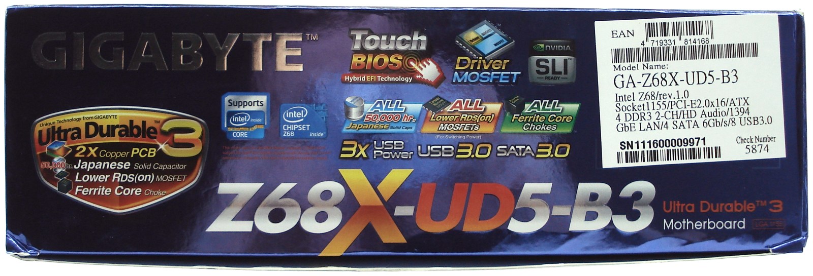 GIGABYTE GA-Z68X-UD5-B3. Embalaje Vista Inferior