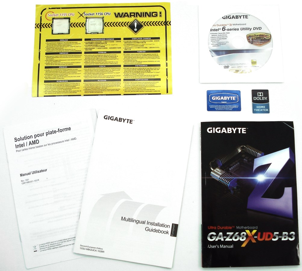 GIGABYTE GA-Z68X-UD5-B3. Manuales, Pegatinas y CD de Drivers