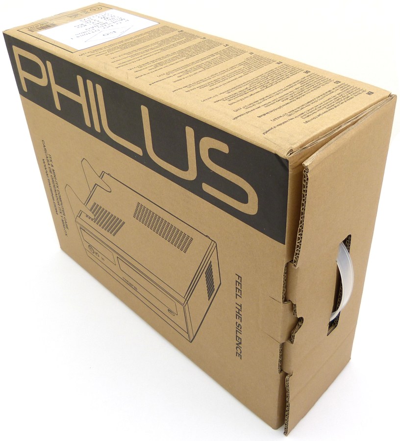 La Philus viene presentada en el interior de un embalaje básico de cartón, entrando en torno al perfil muy económico de un producto. Al menos lleva impreso en todas sus caras con tinta negra información básica para entender de qué se trata. Se emplean esquemas de la caja para representarla, detallando aspecto, dimensiones y algún accesorio destacado, entre otras características. Se hace uso de múltiples idiomas en los laterales para describir el producto.
