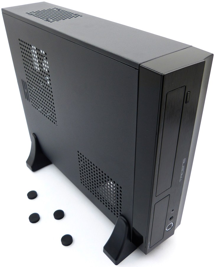 Incluye dos kits distintos de patas, adhesivas para posición en horizontal o estabilizadoras (que se fijan francamente bien) para posición en vertical, la posición más idónea para este tipo de torre. Además, el ventilador está orientado para impulsar el aire hacia arriba, yendo a favor de la termodinámica.