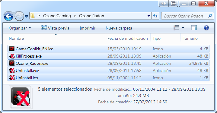 OZONE GAMING RADON OPTO. Detalle Archivos Software Instalado