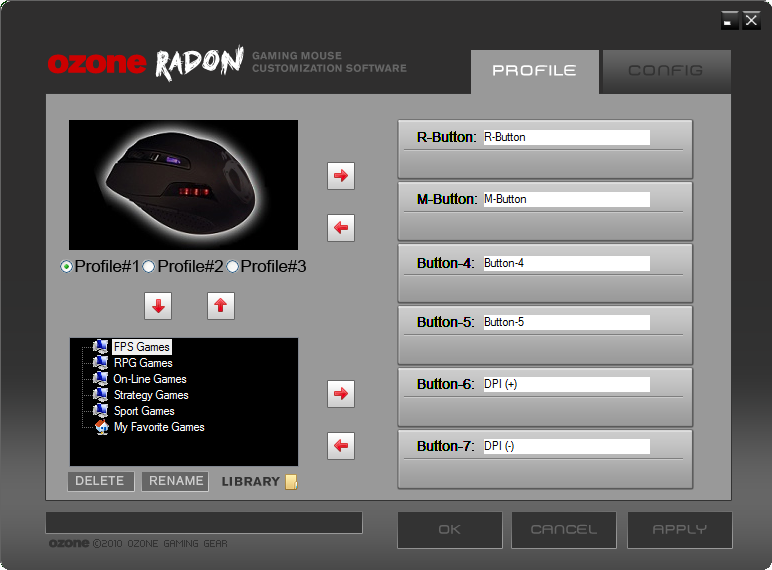 OZONE GAMING RADON OPTO. Captura Software Ozone Radon. Sección «Profile»