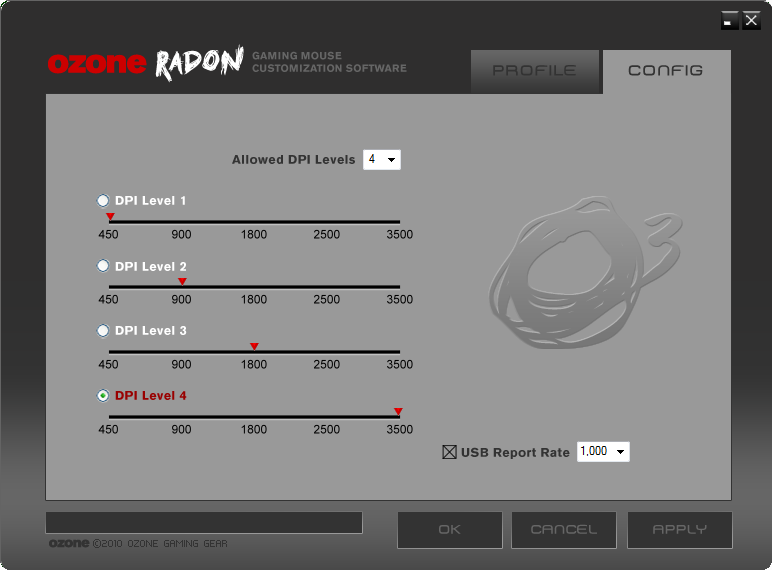 OZONE GAMING RADON OPTO. Captura Software Ozone Radon. Sección «Config»