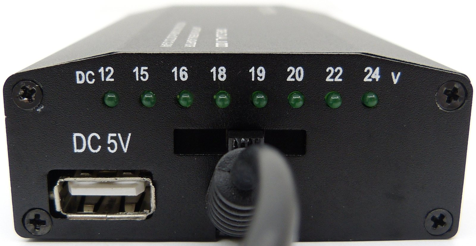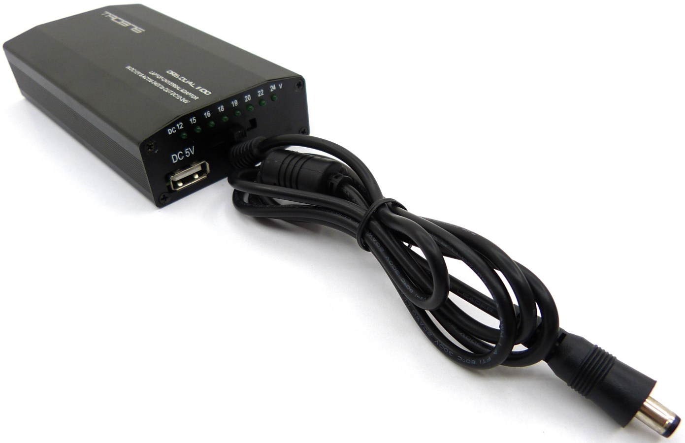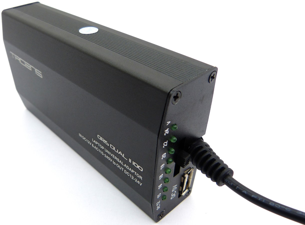 TACENS ORIS DUAL II 100. Vista Delantera. Panel de Control. Conectores de Salida de CC