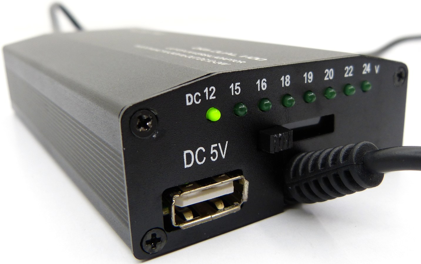 Cada componente que se conecte, debido a sus necesidades de alimentación es necesario conocer qué tensión de entrada necesita para configurar el transformador de Tacens. Este paso previo antes de conectar cualquier aparato, resulta obligatorio para no sufrir ningún percance. Es de vital importancia que queda aparato sea alimentado con su tensión correspondiente, ya que de lo contrario se puede quemar la circuitería de entrada de dicho aparato, sea el portátil, notebook, netbook o ultrabook que sea compatible. Una vez localizada dicha tensión, es fundamental no tocar jamás el interruptor de 8 posiciones, ya que si lo subimos, entrega demasiada tensión, y si lo bajamos, podemos producir un cuelgue en el portátil en funcionamiento. Este interruptor tiene 7 saltos entre las 8 posiciones, en los que no entrega tensión, así que debemos asegurarnos que el piloto LED verde correspondiente esté encendido en la tensión que deseemos.