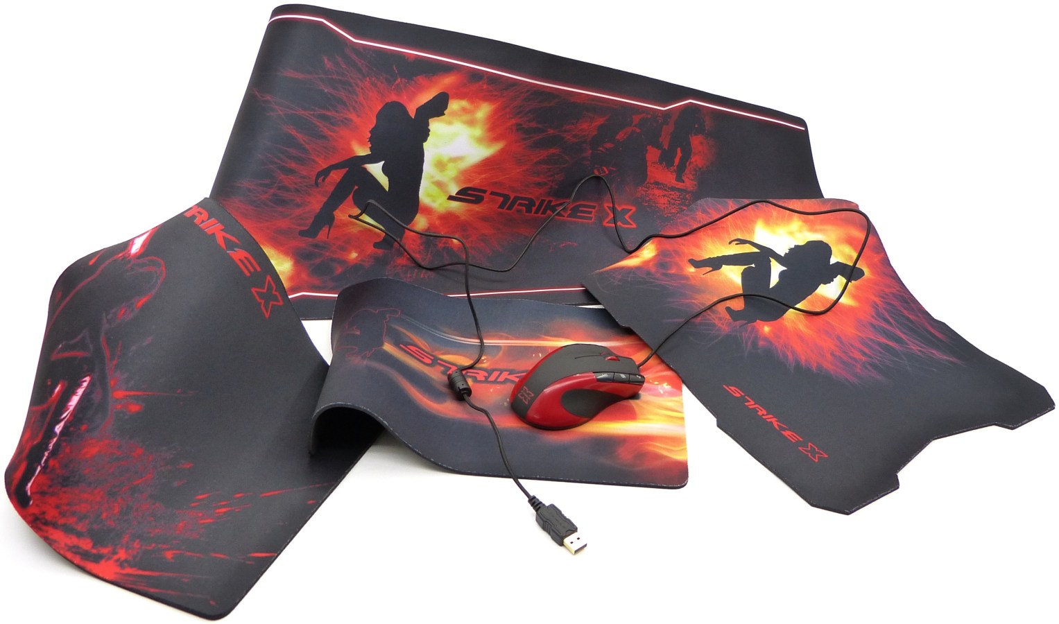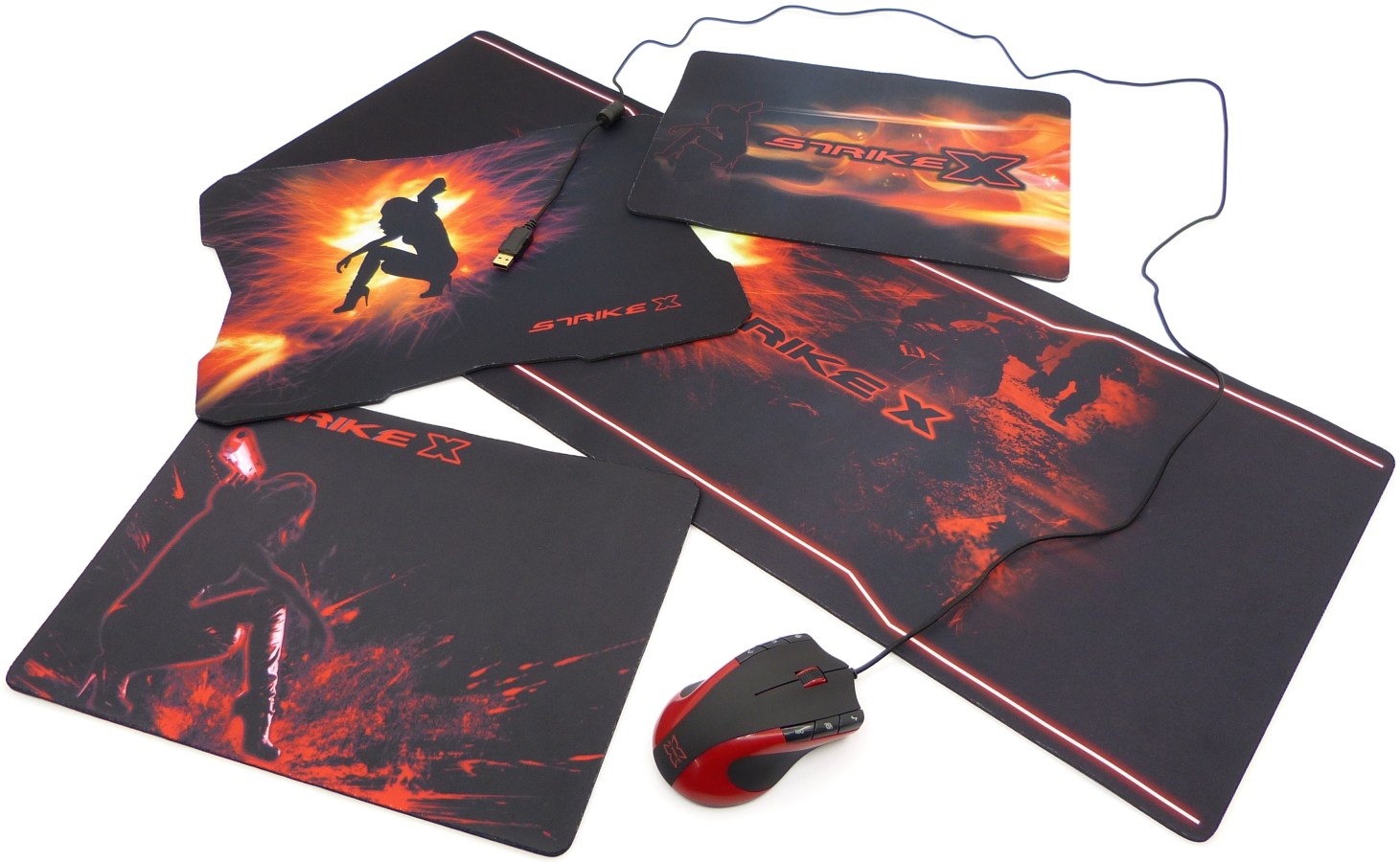 14. AEROCOOL 13 PRODUCTOS SERIE STRIKE-X. Galería Fotográfica Conjunta XIII. Fotografías de Exposición Alfombrilla + Ratón. Strike-X Glider, Strike-X Fury, Strike-X X-Pad, Strike-X Super Pad y Strike-X Combat