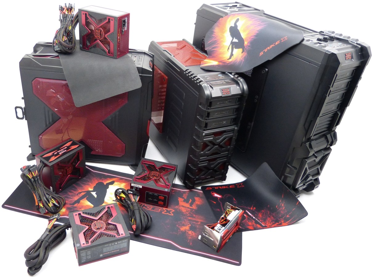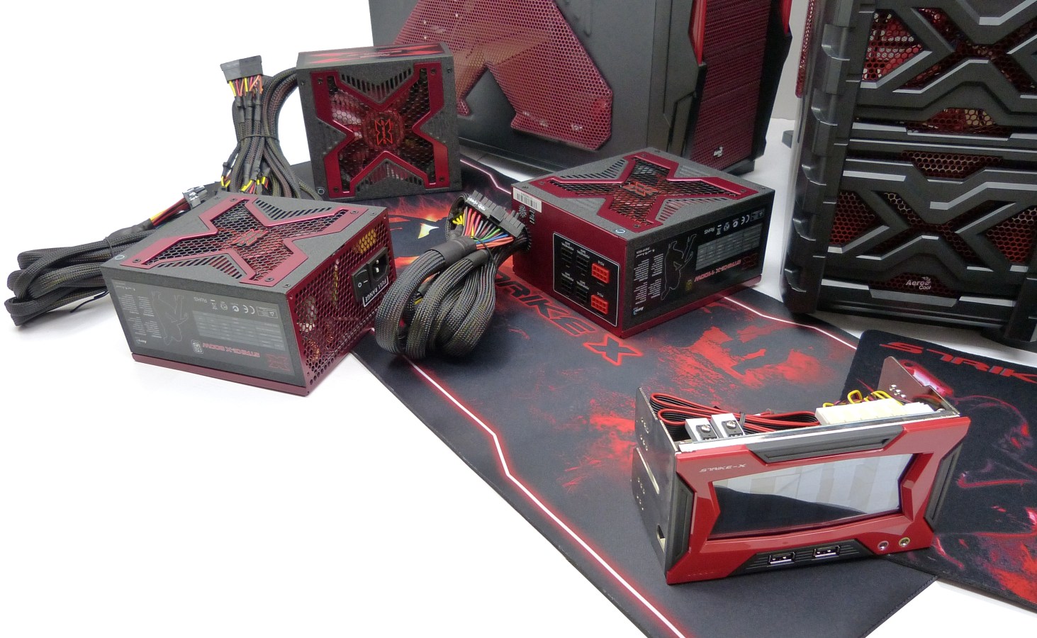 AEROCOOL 13 PRODUCTOS SERIE STRIKE-X. Fuentes Strike-X. Fotografía de Exposición Elaborada de Detalle I