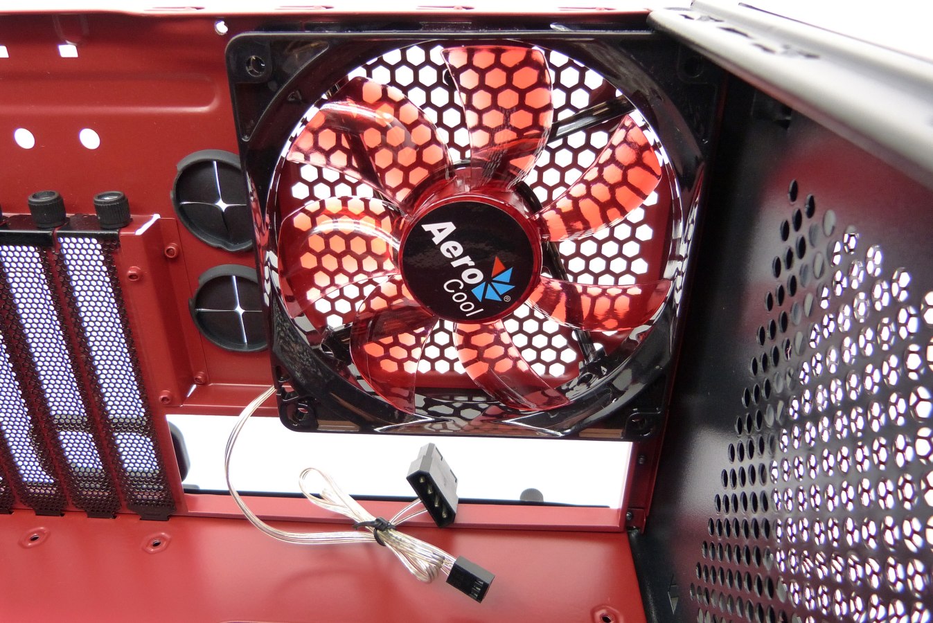 AEROCOOL STRIKE-X GT DEVIL RED. Detalle Ventilador de Extracción Trasero 12cm