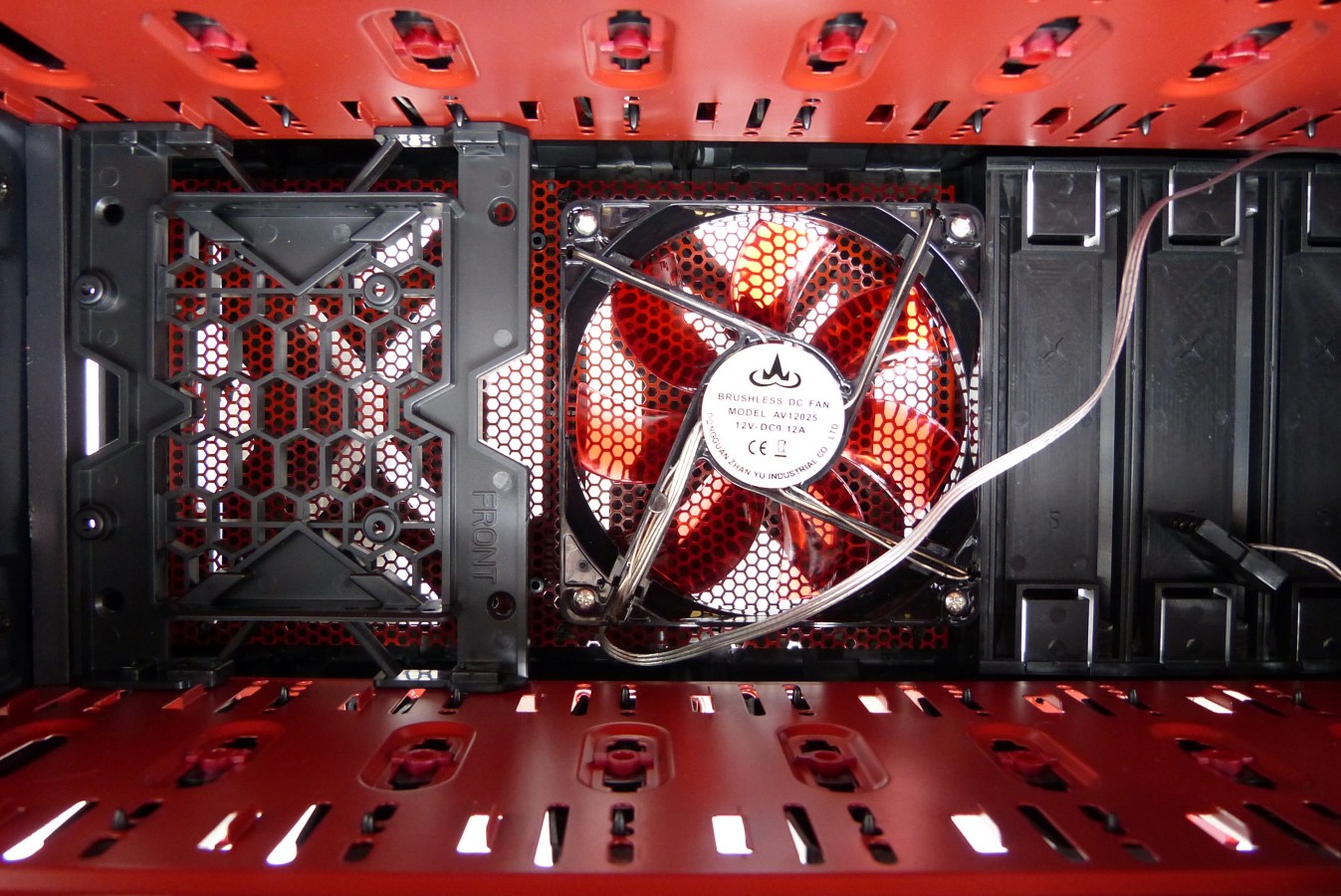 AEROCOOL STRIKE-X GT DEVIL RED. Detalle Ventilador de Inyección Delantero 12cm