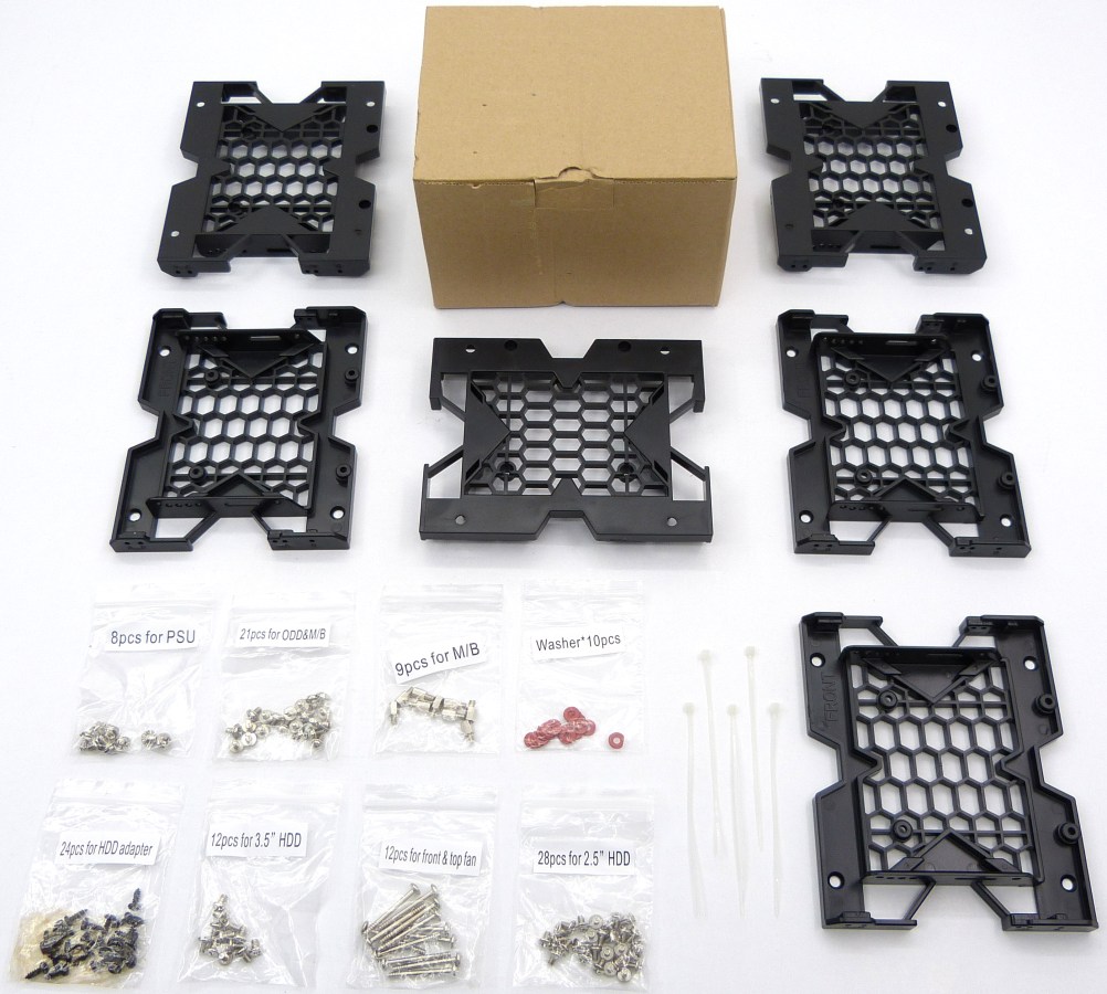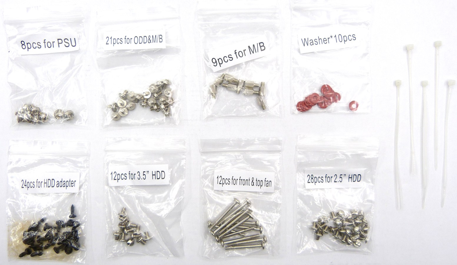 AEROCOOL STRIKE-X GT DEVIL RED. Detalle Kits Clasificados de Tornillos (x8 bolsas). Bridas de Atado (x5)