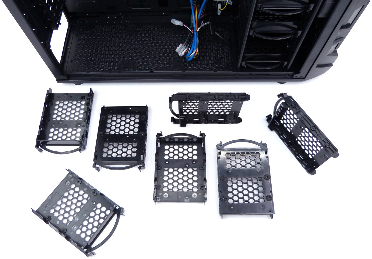 AEROCOOL STRIKE-X ST BLACK. Vista General Bandejas Extraíbles para HDDs de 3.5″ (x10)