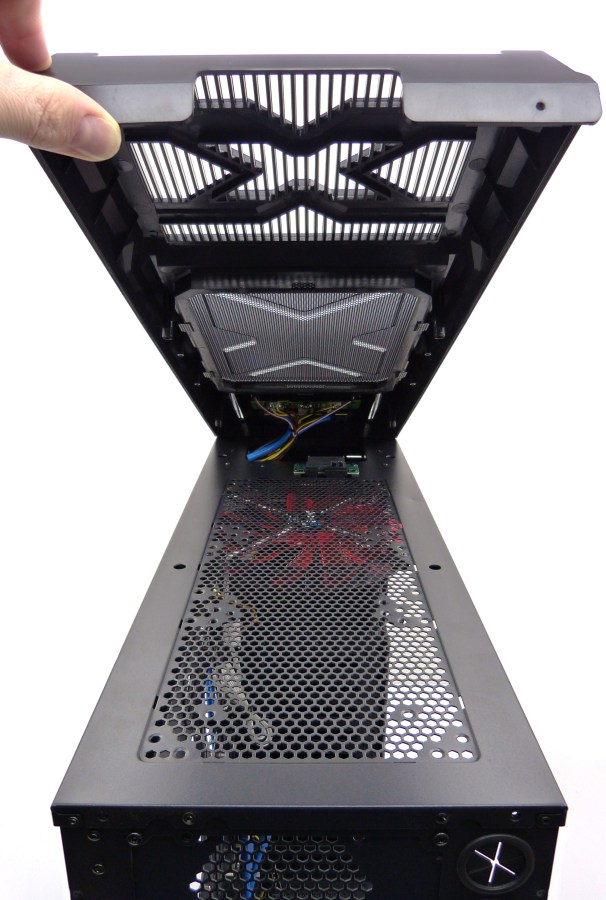 AEROCOOL STRIKE-X ST BLACK. Detalle General Desarme Lomo de Plástico ABS. Anclajes. Compatible con 3x FAN 14cm, 3x FAN 12cm o 2x FAN 20cm