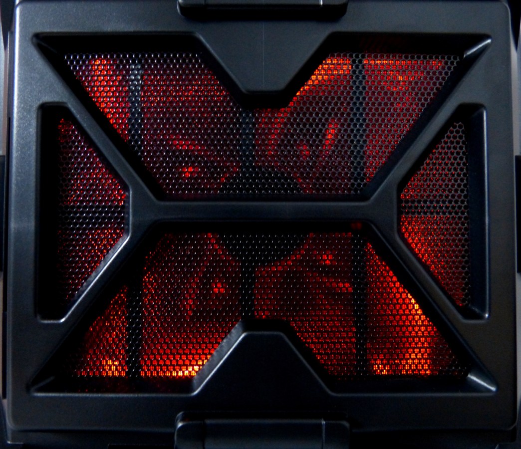 AEROCOOL STRIKE-X ST BLACK. Detalle Efecto Modding Luz Roja Frontal Exterior