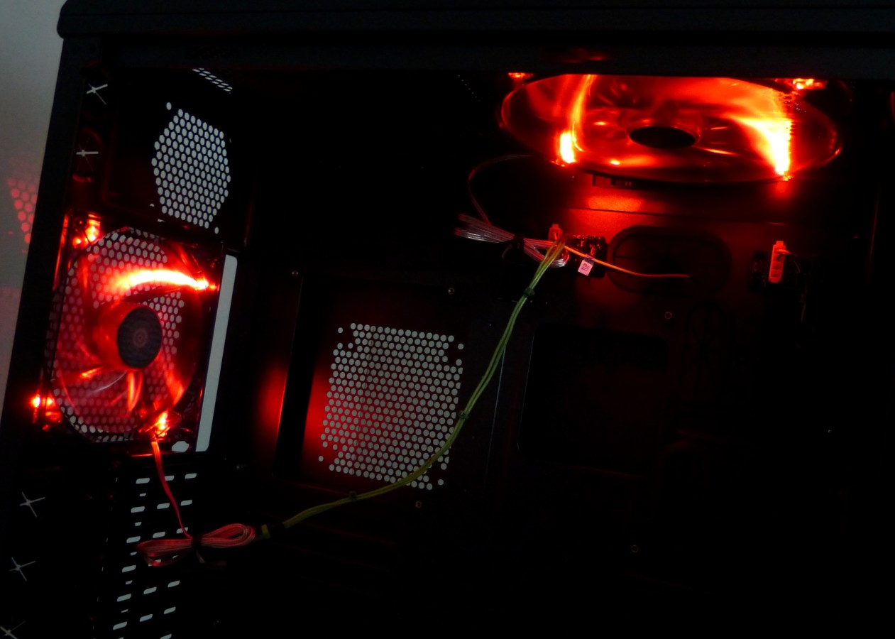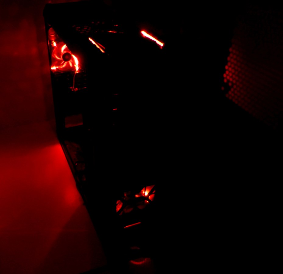 Aunque esto no suele ser muy importante, es una característica más que hará gozar a los más entusiastas y fanáticos del gaming y del modding, donde lo retro, chillón o más llamativo resulta ser lo más atractivo. La ST viene equipada con 3 ventiladores, todos con poderosos LEDs, que iluminan la torre por completo en color rojo, tal como se muestra en las fotografías superiores. Precisamente ese tono rojo es el más atractivo de los LEDs rojos. Sin duda un buen toque modding. Además, viene con dos tiras de iluminación roja en su frente, que potencian la luminosidad en toda esta zona, proveniente esta vez de fuera y no del interior. Si no queremos estas luces, se pueden desconectar desde el interior.