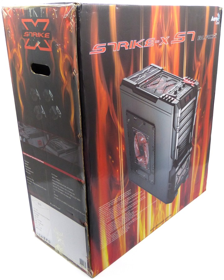 AEROCOOL STRIKE-X ST BLACK. Embalaje Vista Lateral Derecha