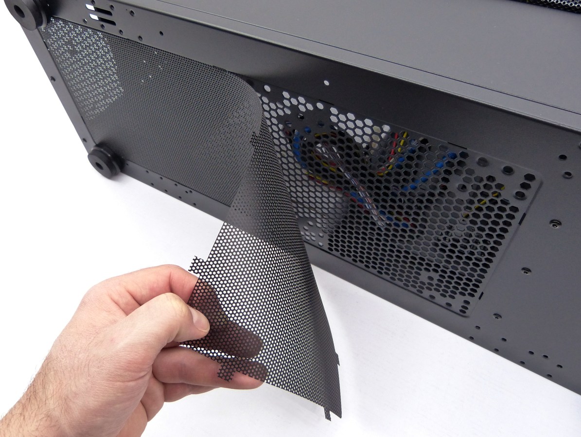 AEROCOOL STRIKE-X ST BLACK. Detalle Filtro Metálico Antipolvo Inferior Desmontable